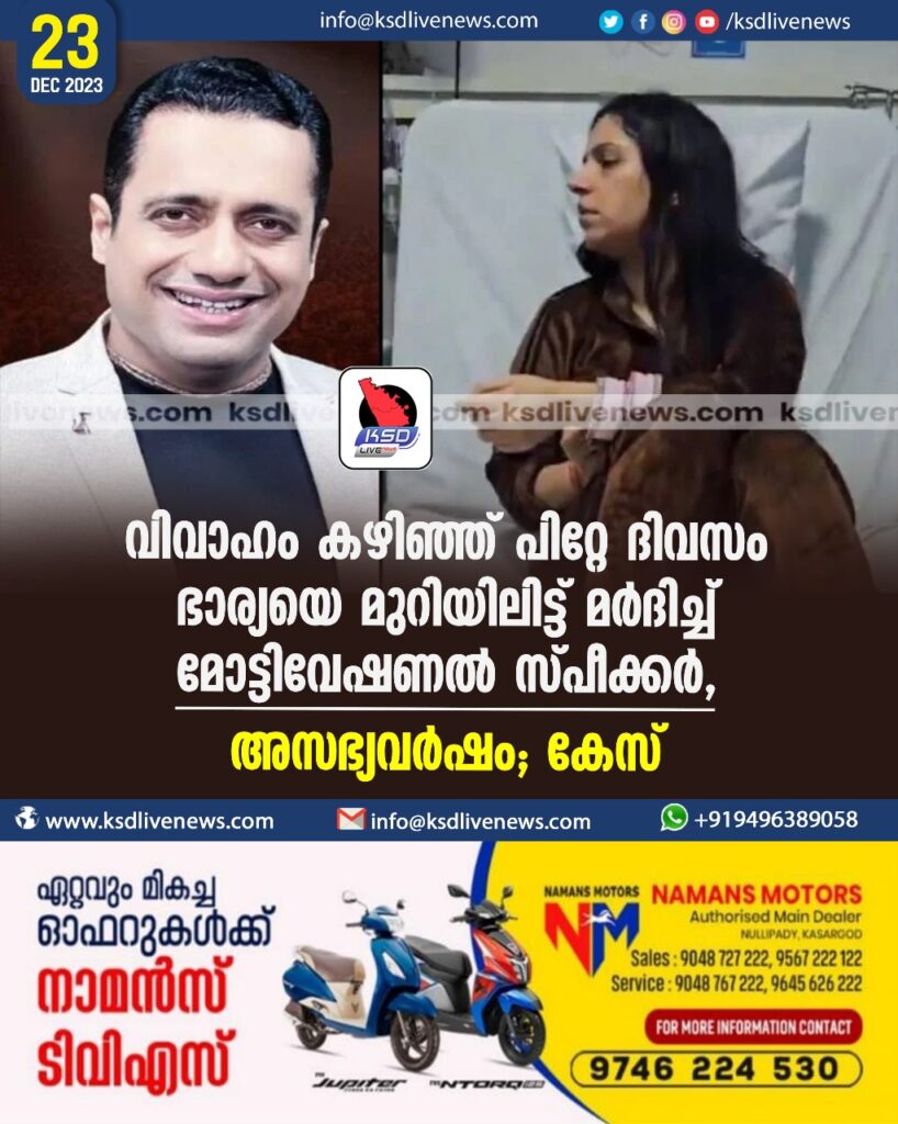 വിവാഹം കഴിഞ്ഞ് പിറ്റേദിവസം ഭാര്യയെ മുറിയിലിട്ട് മർദിച്ച് മോട്ടിവേഷണൽ സ്പീക്കർ, അസഭ്യവർഷം; കേസ്