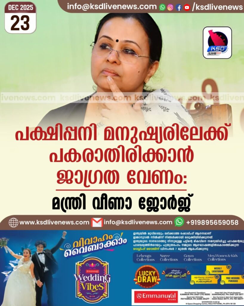 പക്ഷിപ്പനി മനുഷ്യരിലേക്ക് പകരാതിരിക്കാൻ ജാഗ്രത വേണം: മന്ത്രി വീണാ ജോര്ജ്