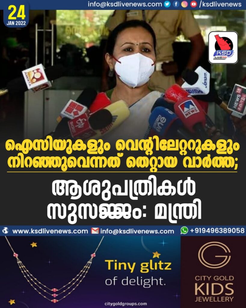 ഐസിയുകളും വെന്റിലേറ്ററുകളും നിറഞ്ഞുവെന്നത് തെറ്റായ വാര്ത്ത; ആശുപത്രികള് സുസജ്ജം: മന്ത്രി