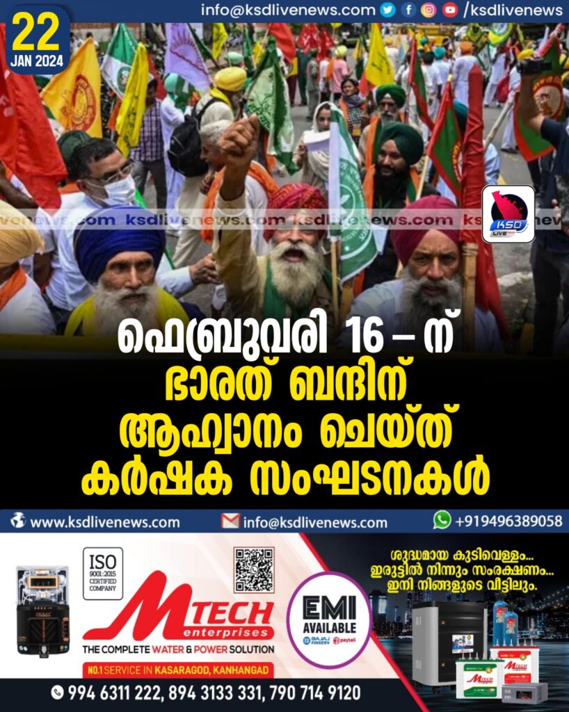 ഫെബ്രുവരി 16-ന് ഭാരത് ബന്ദിന് ആഹ്വാനം ചെയ്ത് കർഷക സംഘടനകൾ.
