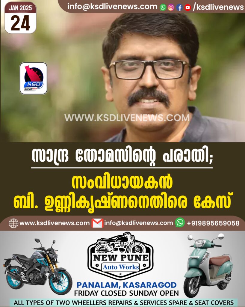 സാന്ദ്ര തോമസിൻ്റെ പരാതി; സംവിധായകന് ബി. ഉണ്ണികൃഷ്ണനെതിരെ കേസ്
