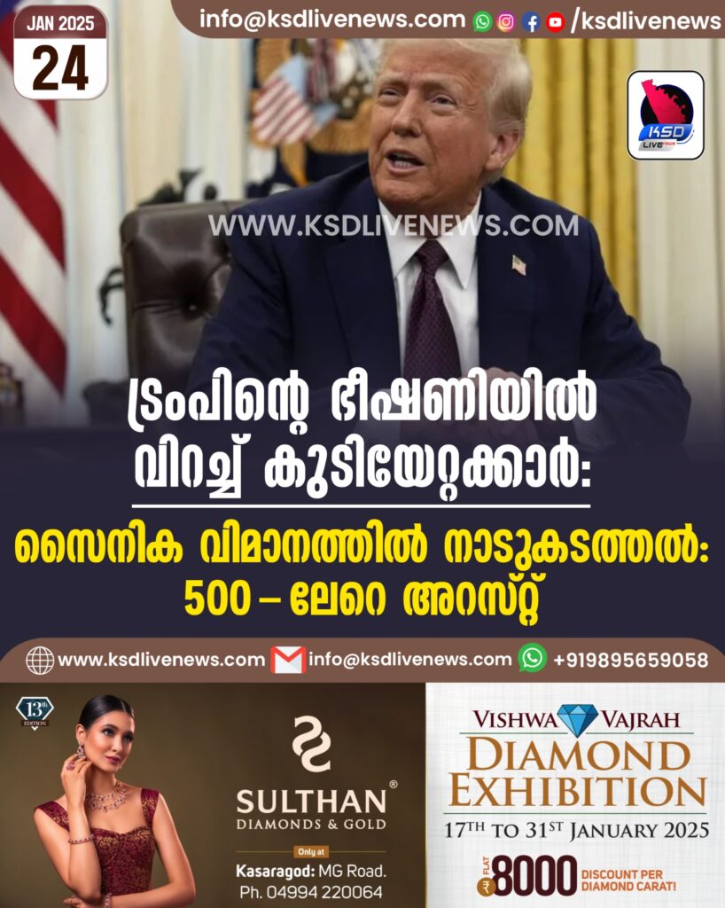 ട്രംപിന്റെ ഭീഷണിയിൽ വിറച്ച് കുടിയേറ്റക്കാർ; സൈനിക വിമാനത്തിൽ നാടുകടത്തൽ: 500-ലേറെ അറസ്റ്റ്