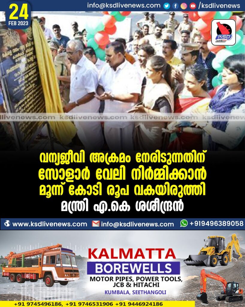 വന്യജീവി അക്രമം നേരിടുന്നതിന് സോളാര് വേലി നിര്മ്മിക്കാന് മൂന്ന് കോടി രൂപ വകയിരുത്തി-മന്ത്രി എ.കെ ശശീന്ദ്രന്