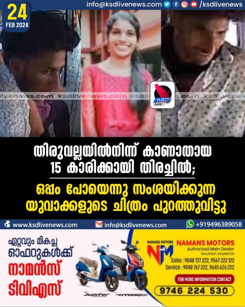 തിരുവല്ലയിൽനിന്ന് കാണാതായ 15കാരിക്കായി തിരച്ചിൽ; ഒപ്പം പോയെന്നു സംശയിക്കുന്ന യുവാക്കളുടെ ചിത്രം പുറത്തുവിട്ടു
