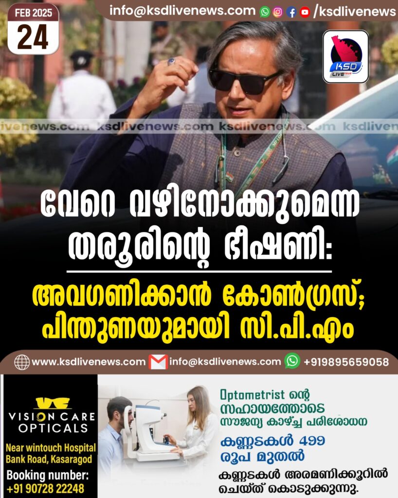 വേറെ വഴിനോക്കുമെന്ന തരൂരിന്റെ ഭീഷണി; അവഗണിക്കാന് കോണ്ഗ്രസ്, പിന്തുണയുമായി സിപിഎം