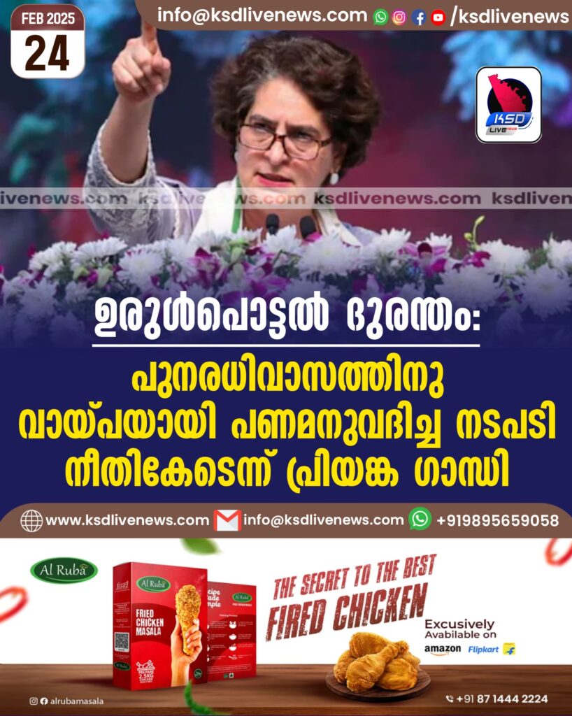 ഉരുൾപൊട്ടൽ ദുരന്തം: പുനരധിവാസത്തിനു വായ്പയായി പണമനുവദിച്ച നടപടി നീതികേടെന്ന് പ്രിയങ്ക ഗാന്ധി