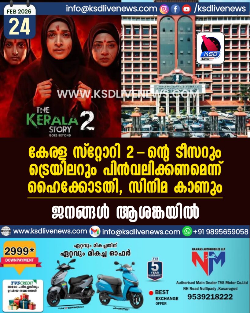 കേരള സ്റ്റോറി 2-’ന്റെ ടീസറും ട്രെയിലറും പിൻവലിക്കണമെന്ന് ഹൈക്കോടതി, സിനിമ കാണും, ‘ജനങ്ങൾ ആശങ്കയിൽ’