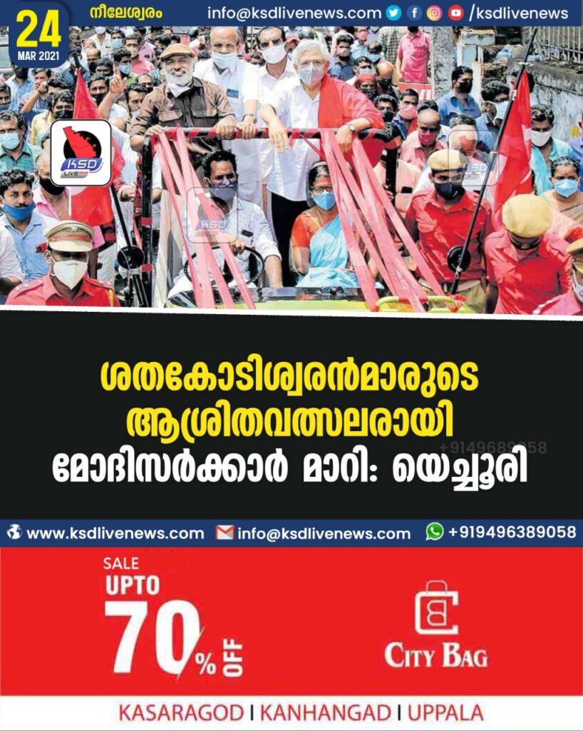 ശതകോടിശ്വരൻമാരുടെ ആശ്രിതവത്സലരായി മോദിസർക്കാർ മാറി: യെച്ചൂരി
