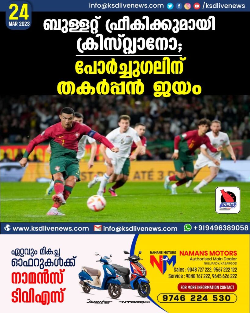 ബുള്ളറ്റ് ഫ്രീകിക്കുമായി ക്രിസ്റ്റ്യാനോ; പോർച്ചുഗലിന് തകർപ്പൻ ജയം
