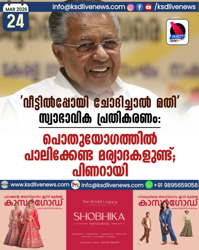 കഴിഞ്ഞദിവസമാണ് കോന്നിയിൽ എൽഡിഎഫ് തിരഞ്ഞെടുപ്പ് കൺവെൻഷനിടെ മുഖ്യമന്ത്രിയുടെ വിവാദപ്രതികരണമുണ്ടായത്. പ്രസംഗത്തിനിടെ സദസ്സിൽനിന്ന് ഒരാൾ ചോദ്യം ചോദിക്കാനൊരുങ്ങിയപ്പോൾ ‘അത് വീട്ടിൽപ്പോയി ചോദിച്ചാൽ മതി’യെന്നായിരുന്നു മുഖ്യമന്ത്രിയുടെ പ്രതികരണം.
