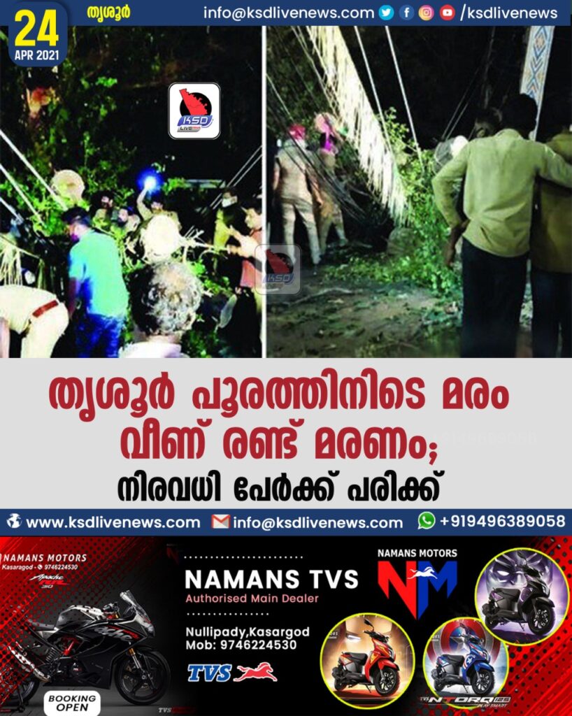 തൃശൂര് പൂരത്തിനിടെ മരം വീണ് രണ്ട് മരണം; നിരവധി പേര്ക്ക് പരിക്ക്