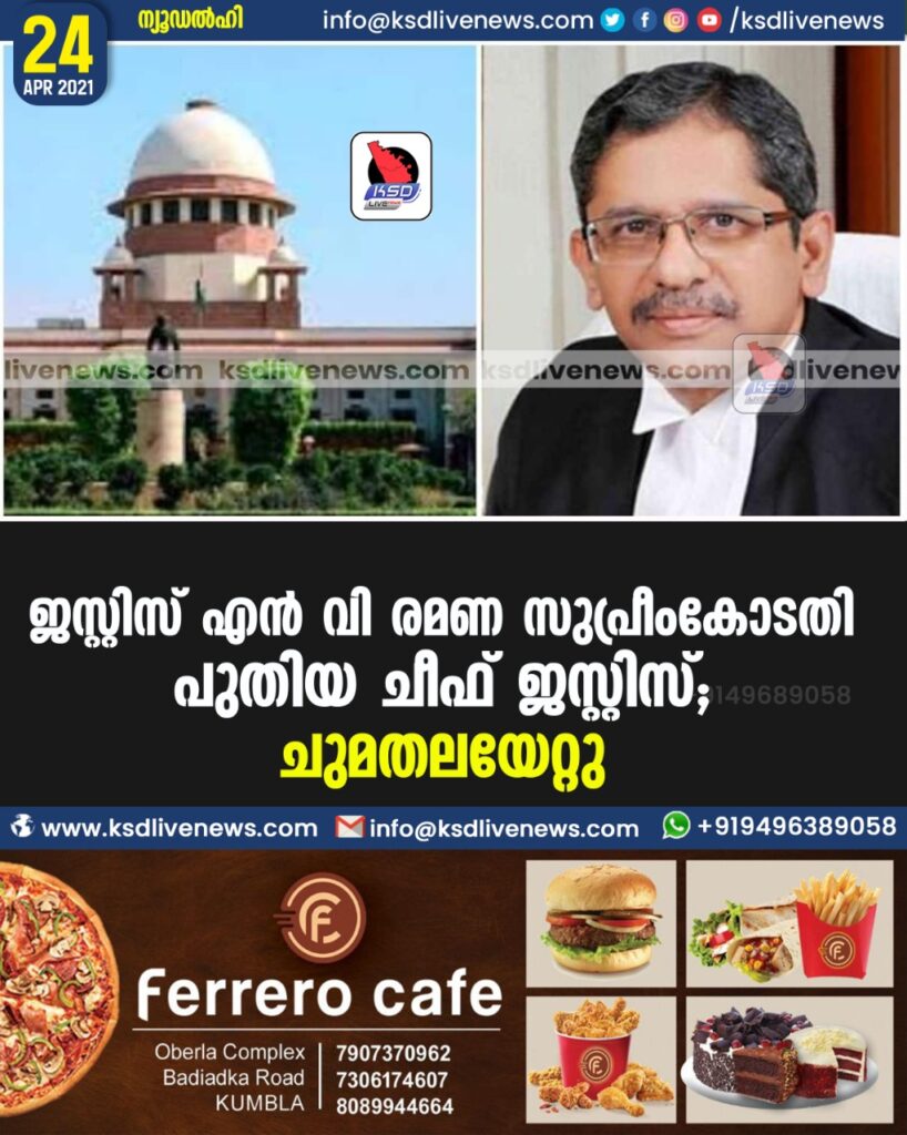 ജസ്റ്റിസ് എന്‍ വി രമണ സുപ്രീംകോടതി പുതിയ ചീഫ് ജസ്റ്റിസ്; ചുമതലയേറ്റു