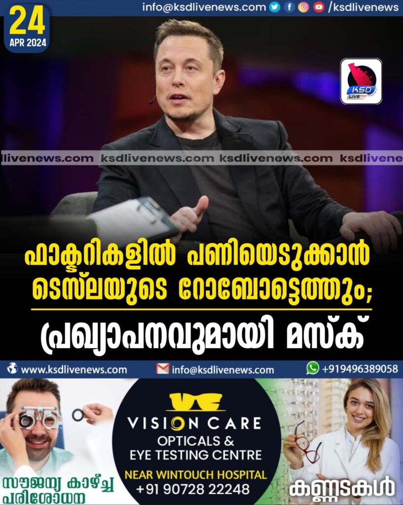 ഫാക്ടറികളില് പണിയെടുക്കാൻ ടെസ്ലയുടെ റോബോട്ടെത്തും; പ്രഖ്യാപനവുമായി മസ്ക്