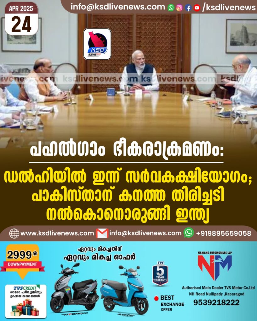 പഹൽഗാം ഭീകരാക്രമണം: ഡൽഹിയിൽ ഇന്ന് സർവകക്ഷിയോഗം; പാകിസ്താന് കനത്ത തിരിച്ചടി നൽകൊനൊരുങ്ങി ഇന്ത്യ