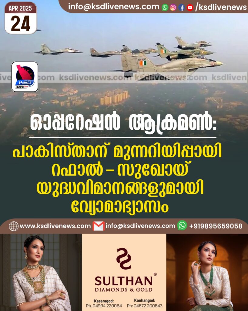 ഓപ്പറേഷന് ആക്രമണ്: പാകിസ്താന് മുന്നറിയിപ്പായി റഫാൽ-സുഖോയ് യുദ്ധവിമാനങ്ങളുമായി വ്യോമാഭ്യാസം