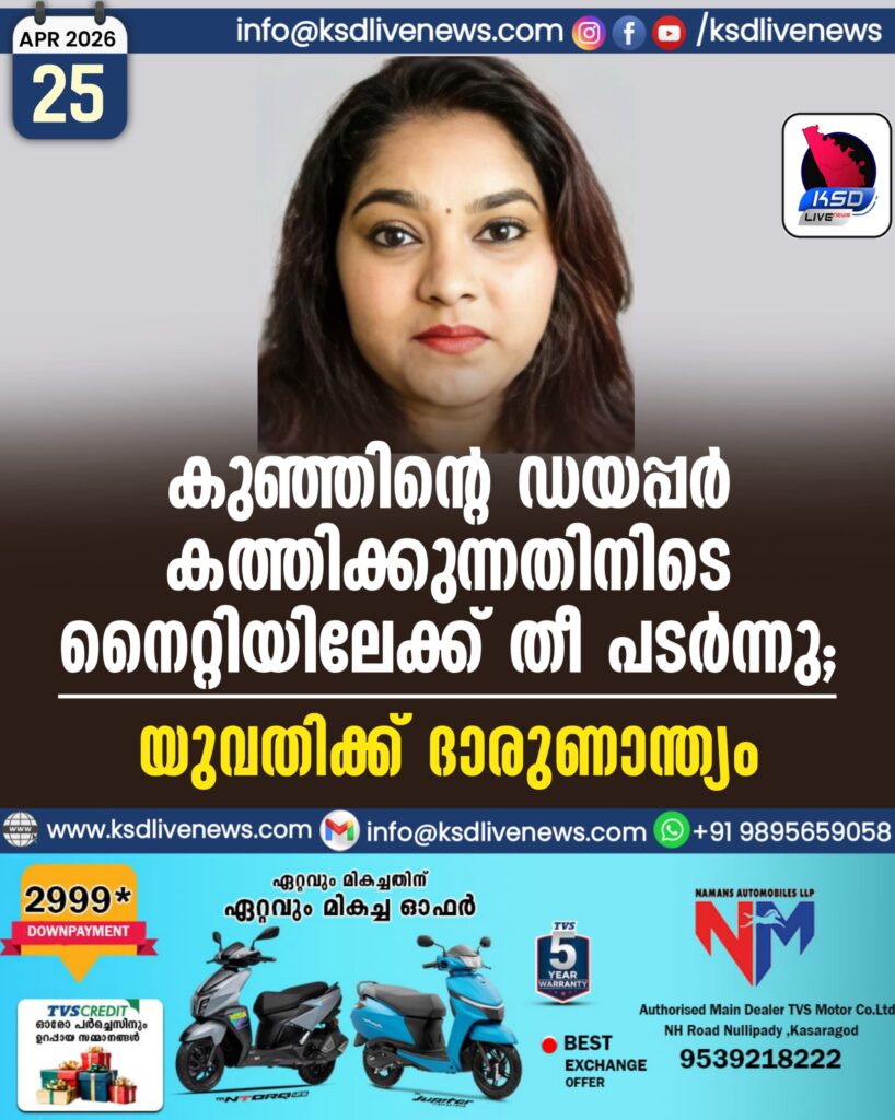 കുഞ്ഞിന്റെ ഡയപ്പർ കത്തിക്കുന്നതിനിടെ നൈറ്റിയിലേക്ക് തീ പടർന്നു; യുവതിക്ക് ദാരുണാന്ത്യം