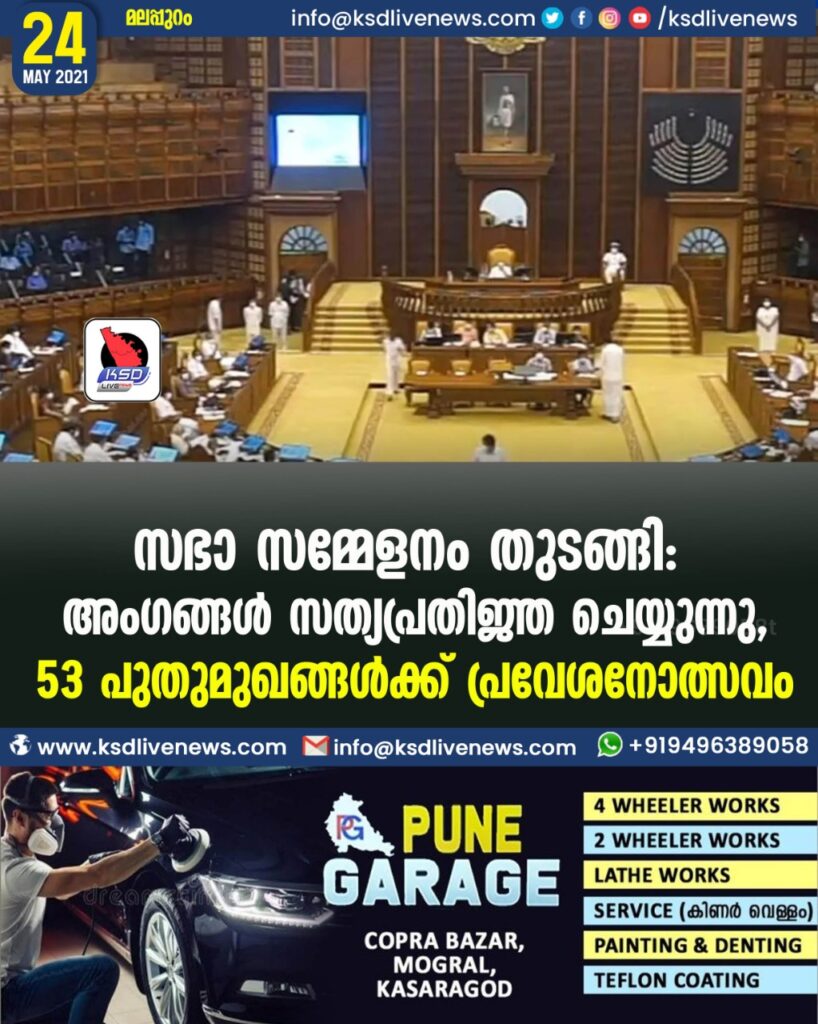 സഭാ സമ്മേളനം തുടങ്ങി: അംഗങ്ങള് സത്യപ്രതിജ്ഞ ചെയ്യുന്നു, 53 പുതുമുഖങ്ങള്ക്ക് പ്രവേശനോത്സവം