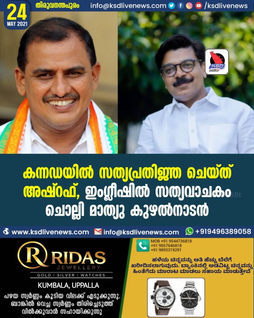 കന്നഡയില് സത്യപ്രതിജ്ഞ ചെയ്ത് അഷ്റഫ്; കുഴല്നാടനും കാപ്പനും ഇംഗ്ലീഷില്