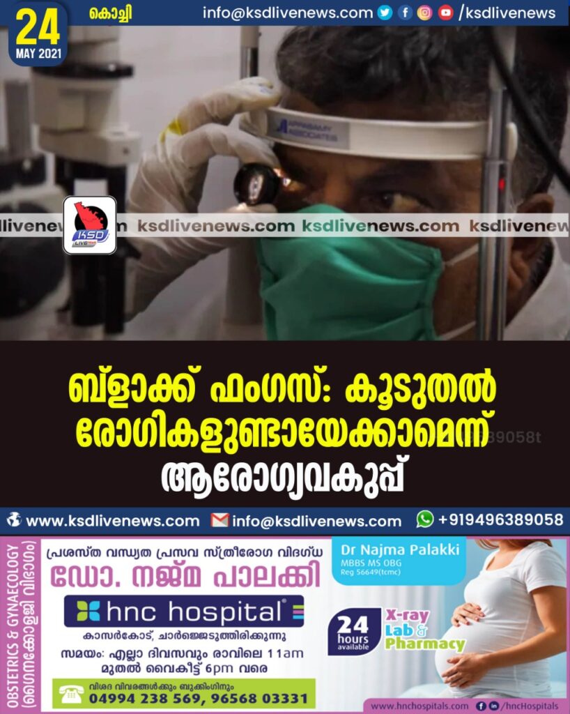 ബ്ളാക്ക് ഫംഗസ്: കൂടുതൽ രോഗികളുണ്ടായേക്കാമെന്ന് ആരോഗ്യവകുപ്പ്