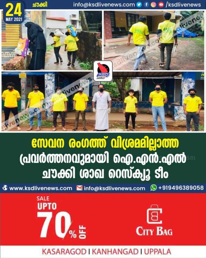 ഐഎൻഎൽ ചൗക്കി ശാഖ റെസ്ക്യൂ ടീം പ്രവർത്തകർ നിസ്വാർത്ഥ സേവനവുമായ വിശ്രമമില്ലാതെ ജനങ്ങളോടൊപ്പം നിന്ന് കൊണ്ട് പ്രവർത്തന രംഗത്ത് സജീവമാണ്.