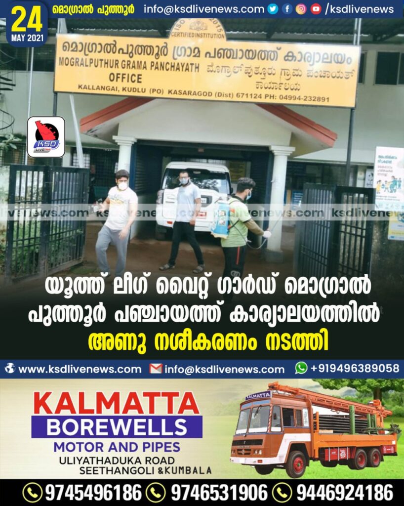 കല്ലങ്കൈ : യൂത്ത് ലീഗ് മൊഗ്രാൽ പുത്തൂർ പഞ്ചായത്ത് വൈറ്റ് ഗാർഡ് വളണ്ടിയർമാർ ഗ്രാമ പഞ്ചായത്ത് കാര്യാലയത്തിൽ അണു നശീകരണം നടത്തി ..