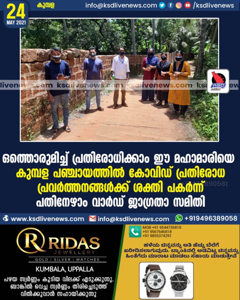 കുമ്പള പഞ്ചായത്തിൽ കോവിഡ് പ്രതിരോധപ്രവർത്തനങ്ങൾക്ക് ശക്തി പകർന്ന് പതിനേഴാം വാർഡ് ജാഗ്രതാ സമിതി.