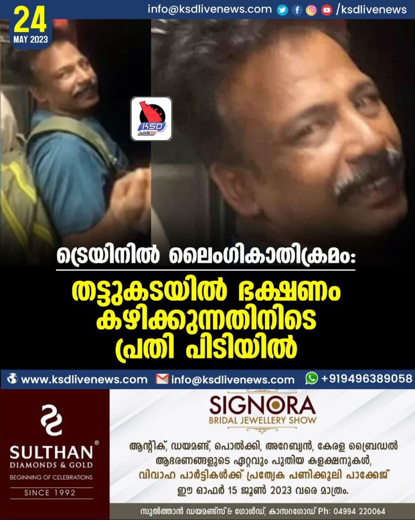 ട്രെയിനിൽ ലൈംഗികാതിക്രമം: തട്ടുകടയിൽ ഭക്ഷണം കഴിക്കുന്നതിനിടെ പ്രതി പിടിയിൽ