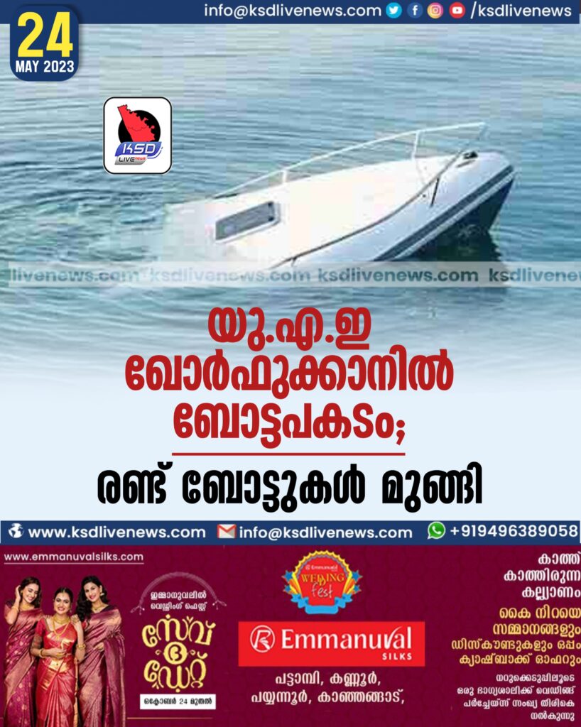യു.എ.ഇ ഖോര്‍ഫുക്കാനില്‍ ബോട്ടപകടം; രണ്ട് ബോട്ടുകള്‍ മുങ്ങി