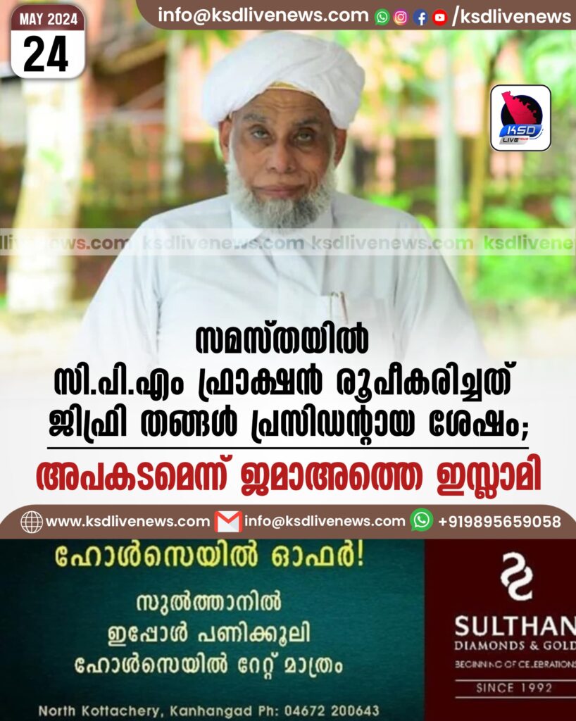സമസ്തയില്‍ സിപിഎം ഫ്രാക്ഷന്‍ രൂപീകരിച്ചത് ജിഫ്രി തങ്ങൾ പ്രസിഡന്റായ ശേഷം; അപകടമെന്ന് ജമാഅത്തെ ഇസ്ലാമി