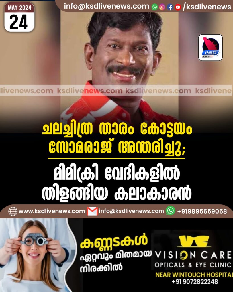 ചലച്ചിത്ര താരം കോട്ടയം സോമരാജ് അന്തരിച്ചു; മിമിക്രി വേദികളിൽ തിളങ്ങിയ കലാകാരൻ