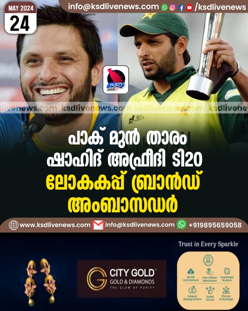 പാക് മുന് താരം ഷാഹിദ് അഫ്രീദി ടി20 ലോകകപ്പ് ബ്രാന്ഡ് അംബാസഡര്