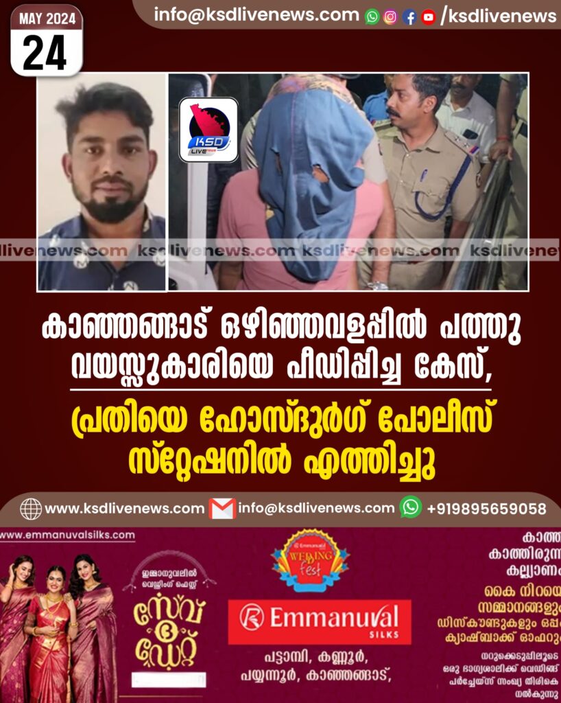 കാഞ്ഞങ്ങാട് ഒഴിഞ്ഞവളപ്പിൽ പത്തു വയസ്സുകാരിയെ പീഡിപ്പിച്ച കേസ്, പ്രതിയെ ഹോസ്ദുര്‍ഗ് പോലീസ് സ്റ്റേഷനില്‍ എത്തിച്ചു