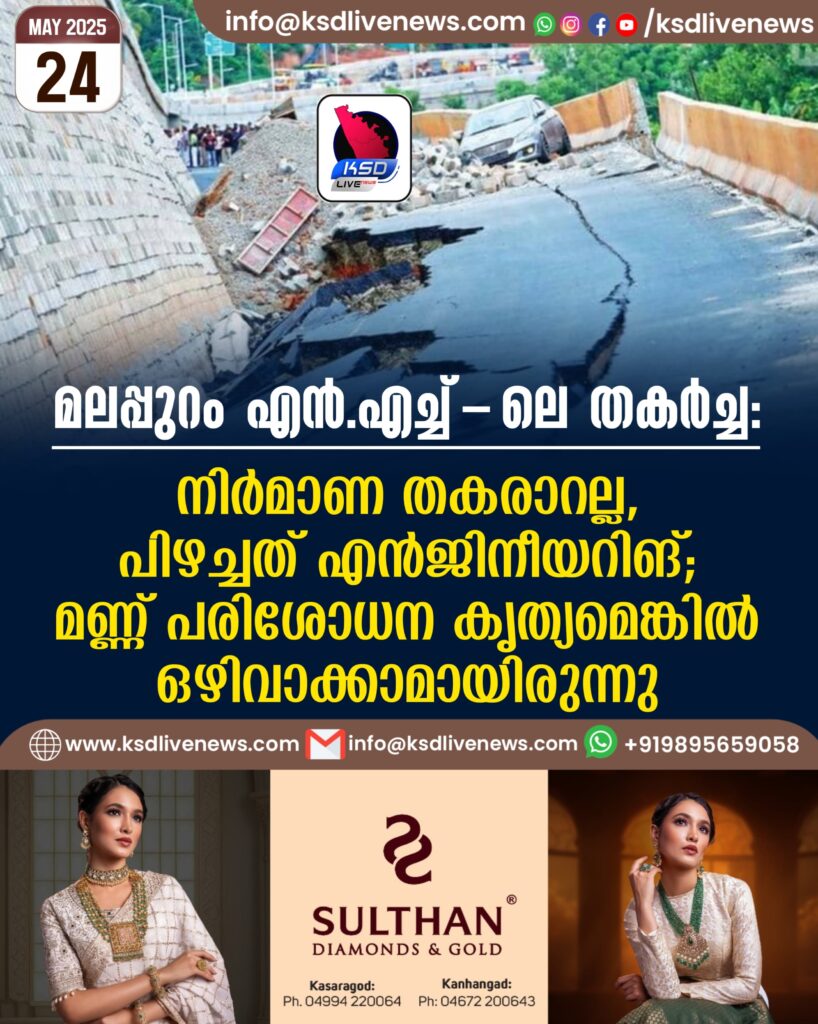 മലപ്പുറം എൻ.എച്ച്-ലെ തകർച്ച: നിർമാണ തകരാറല്ല, പിഴച്ചത് എൻജിനീയറിങ്; മണ്ണ് പരിശോധന കൃത്യമെങ്കിൽ ഒഴിവാക്കാമായിരുന്നു