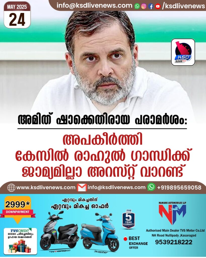 അമിത് ഷാക്കെതിരായ പരാമര്ശം: അപകീര്ത്തി കേസില് രാഹുല് ഗാന്ധിക്ക് ജാമ്യമില്ലാ അറസ്റ്റ് വാറണ്ട്