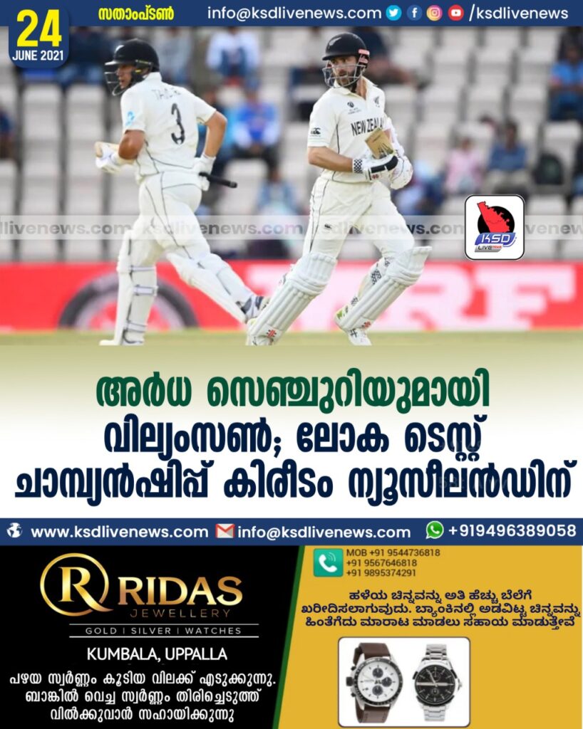അര്ധ സെഞ്ചുറിയുമായി വില്യംസണ്; ലോക ടെസ്റ്റ് ചാമ്പ്യന്ഷിപ്പ് കിരീടം ന്യൂസീലന്ഡിന്