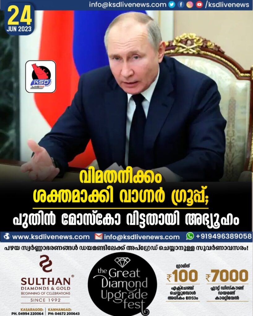 വിമതനീക്കം ശക്തമാക്കി വാഗ്നര് ഗ്രൂപ്പ്; പുതിൻ മോസ്കോ വിട്ടതായി അഭ്യൂഹം