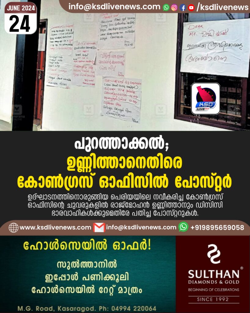 പുറത്താക്കൽ; ഉണ്ണിത്താനെതിരെ കോൺഗ്രസ് ഓഫിസിൽ പോസ്റ്റർ