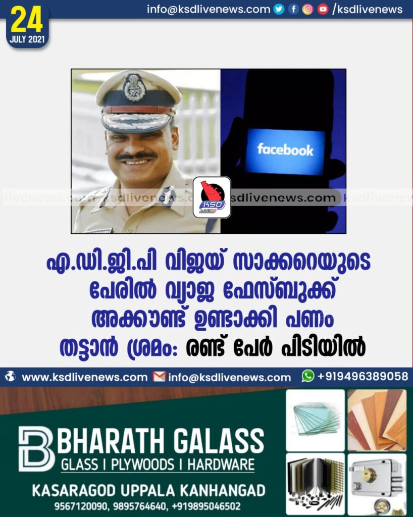 എ.ഡി.ജി.പി വിജയ് സാക്കറെയുടെ പേരില് വ്യാജ ഫേസ്ബുക്ക് അക്കൗണ്ട് ഉണ്ടാക്കി പണം തട്ടാന് ശ്രമം: രണ്ട് പേര് പിടിയില്