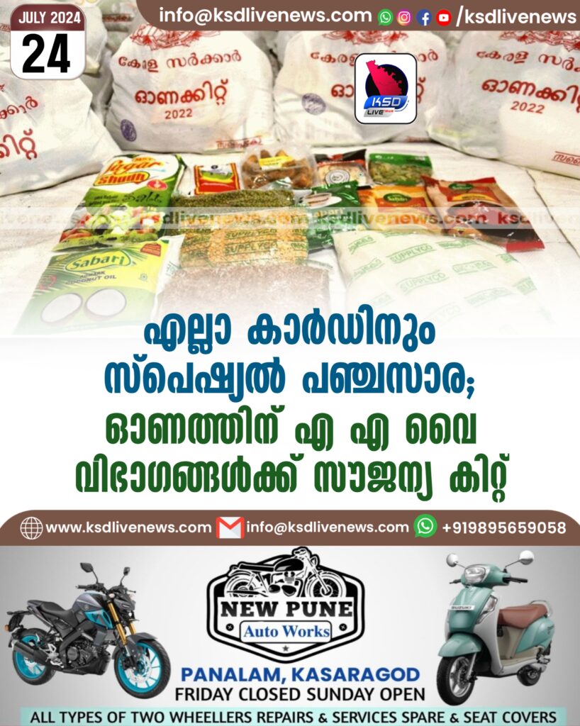എല്ലാ കാര്ഡിനും സ്പെഷ്യല് പഞ്ചസാര; ഓണത്തിന് എ എ വൈ വിഭാഗങ്ങള്ക്ക് സൗജന്യ കിറ്റ്