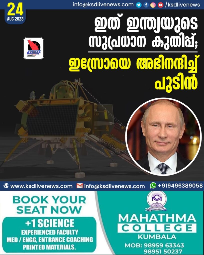 ഇത് ഇന്ത്യയുടെ സുപ്രധാന കുതിപ്പ്’; ഇസ്രോയെ അഭിനന്ദിച്ച് പുടിന്