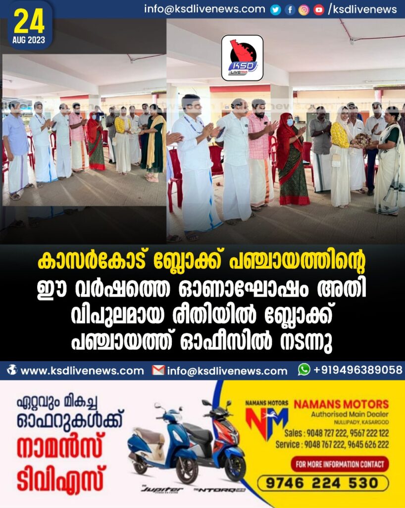 കാസർകോട് ബ്ലോക്ക് പഞ്ചായത്തിന്റെ ഈ വർഷത്തെ ഓണാഘോഷം അതി വിപുലമായ രീതിയിൽ ബ്ലോക്ക് പഞ്ചായത്ത് ഓഫീസിൽ നടന്നു
