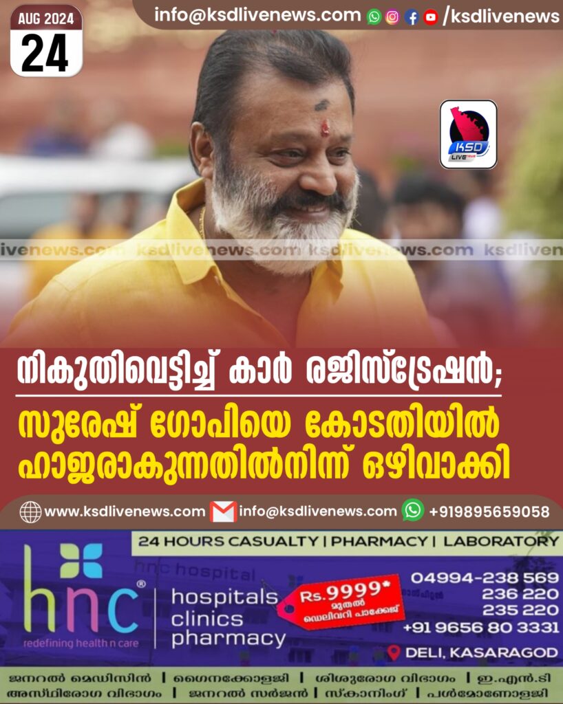 നികുതിവെട്ടിച്ച് കാർ രജിസ്ട്രേഷൻ; സുരേഷ് ഗോപിയെ കോടതിയിൽ ഹാജരാകുന്നതിൽനിന്ന് ഒഴിവാക്കി