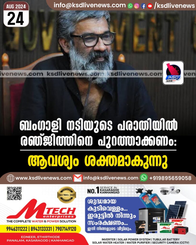 ബംഗാളി നടിയുടെ പരാതിയില് രഞ്ജിത്തിനെ പുറത്താക്കണം: ആവശ്യം ശക്തമാകുന്നു