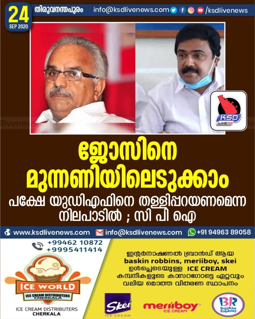 ജോസിനെ മുന്നണിയിലെടുക്കാം ; പക്ഷേ യുഡിഎഫിനെ തള്ളിപ്പറയണമെന്ന നിലപാടിൽ ; സി പി ഐ