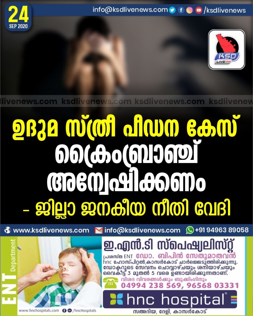ഉദുമ സ്ത്രീ പീഡന കേസ് ക്രൈംബ്രാഞ്ച് അന്വേഷിക്കണം. – ജില്ലാ ജനകീയ നീതി വേദി.