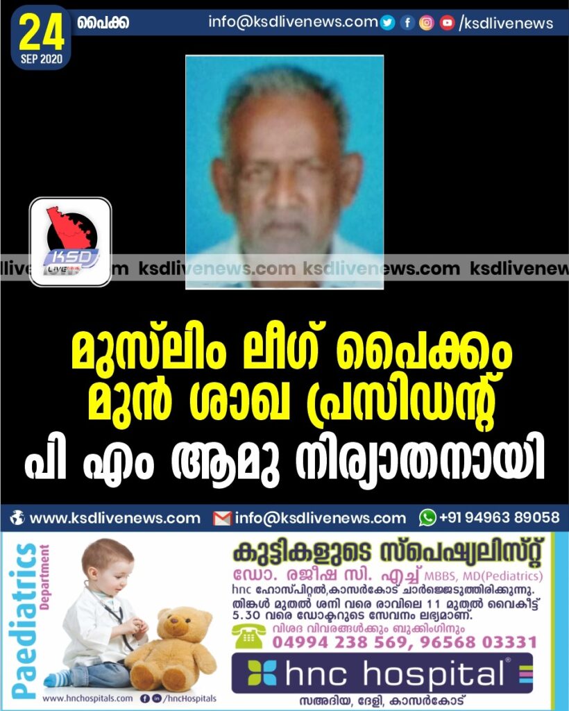 മുസ്ലിം ലീഗ് പൈക്കം മുൻ ശാഖ പ്രസിഡന്റ് പി എം ആമു നിര്യാതനായി