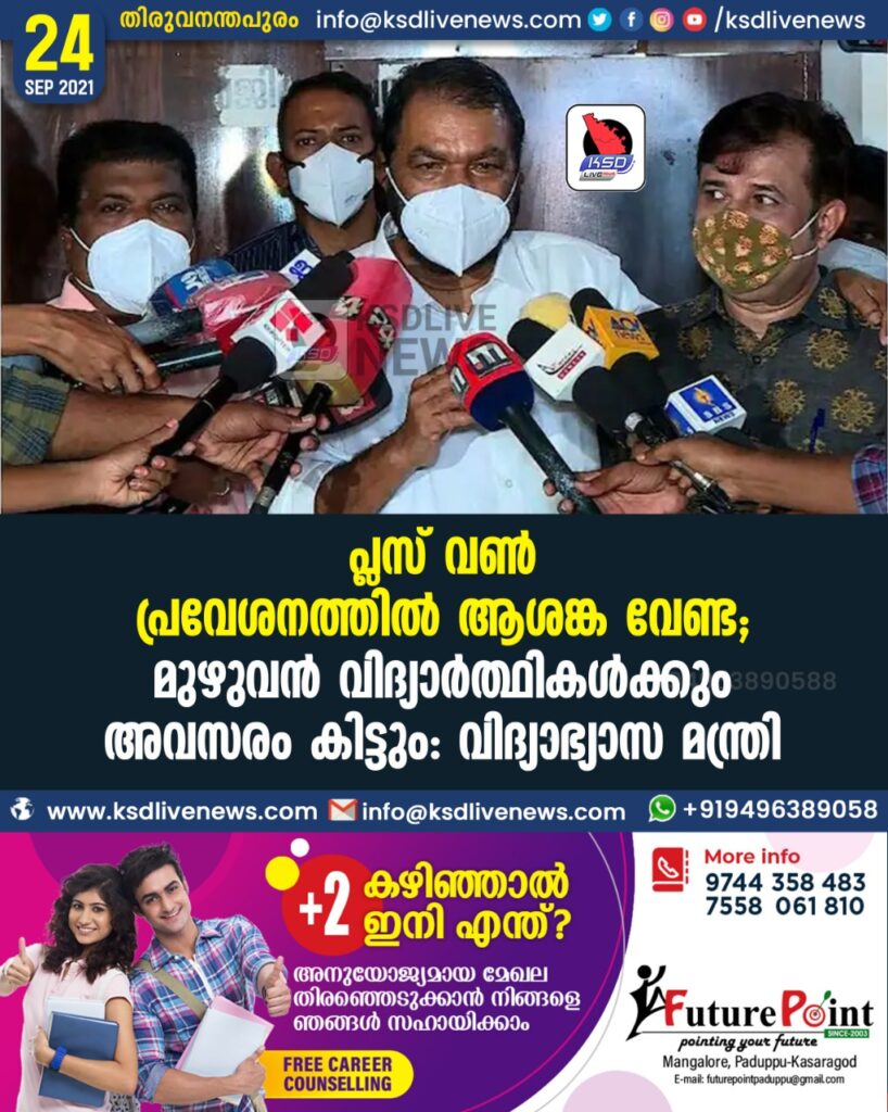 ‘പ്ലസ് വണ് പ്രവേശനത്തില് ആശങ്ക വേണ്ട’, മുഴുവന് വിദ്യാര്ത്ഥികള്ക്കും അവസരം കിട്ടും: വിദ്യാഭ്യാസ മന്ത്രി