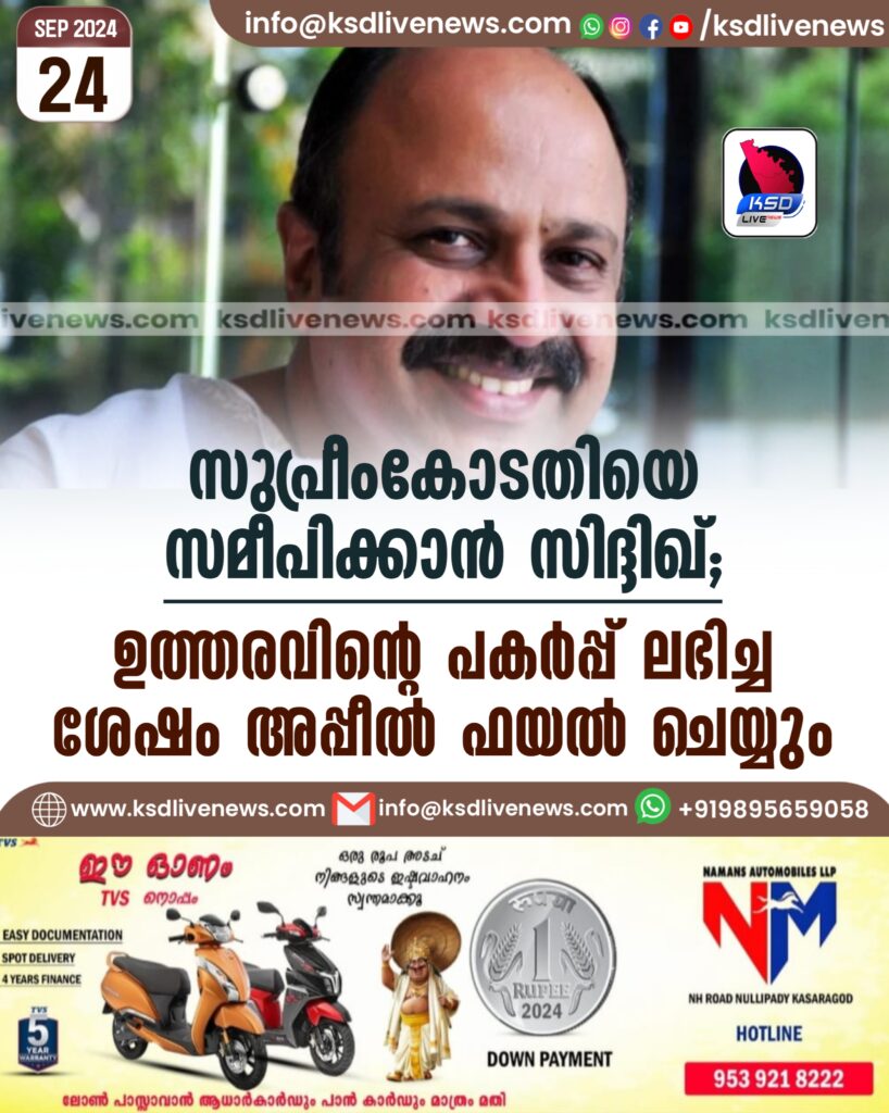സുപ്രീംകോടതിയെ സമീപിക്കാന് സിദ്ദിഖ്; ഉത്തരവിന്റെ പകര്പ്പ് ലഭിച്ച ശേഷം അപ്പീല് ഫയല് ചെയ്യും