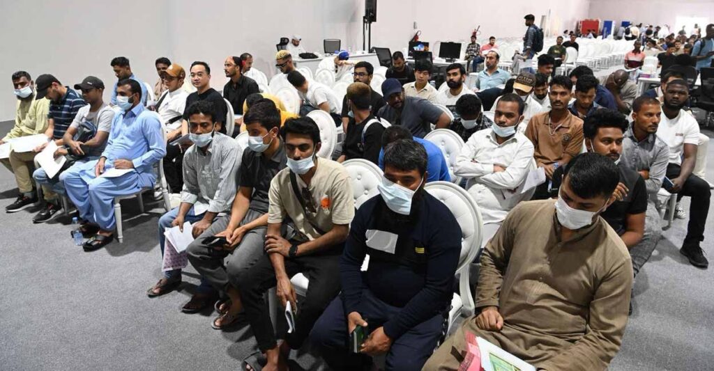 അൽ അവീറിലെ പൊതുമാപ്പ് കേന്ദ്രത്തിലെത്തിയ അപേക്ഷകർ