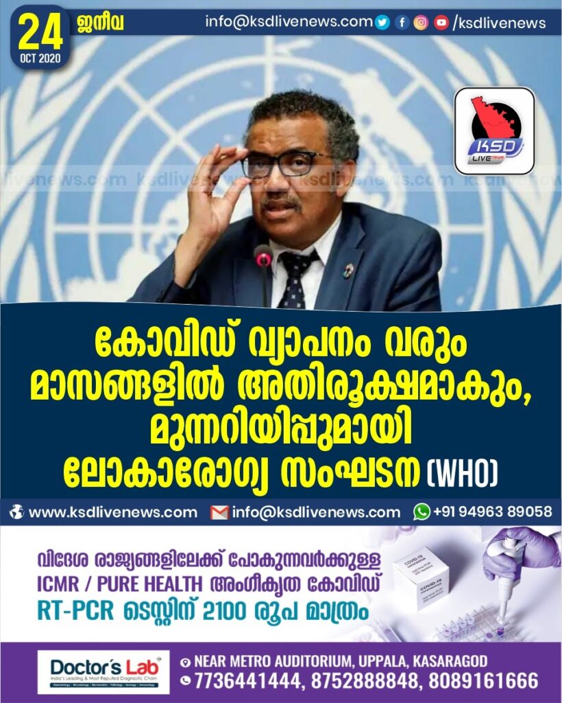 കോവിഡ് വ്യാപനം വരും മാസങ്ങളിൽ അതിരൂക്ഷമാകും , മുന്നറിയിപ്പുമായി ലോകാരോഗ്യ സംഘടന (who)